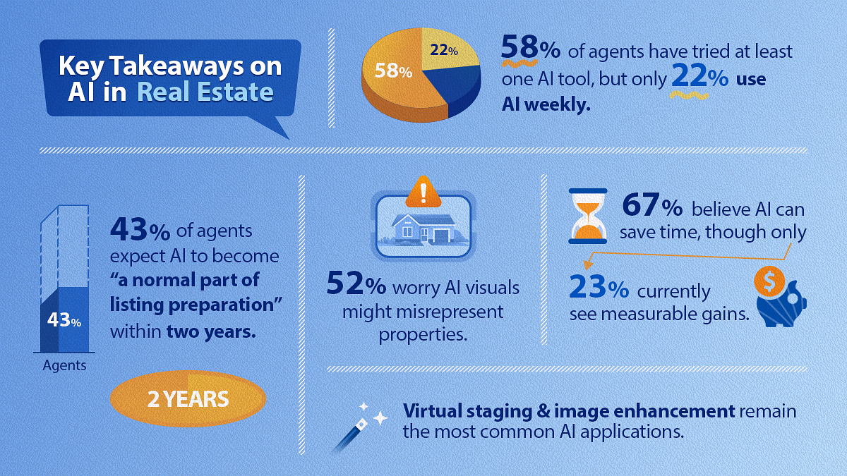 - 43% of agents expect AI to become “a normal part of listing preparation” within two years.